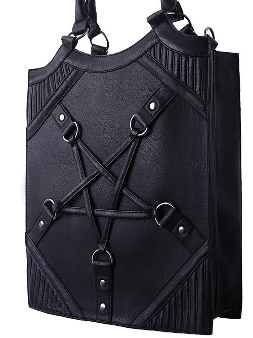 Kabelka s plastickým zdobením ve tvaru pentagramu.